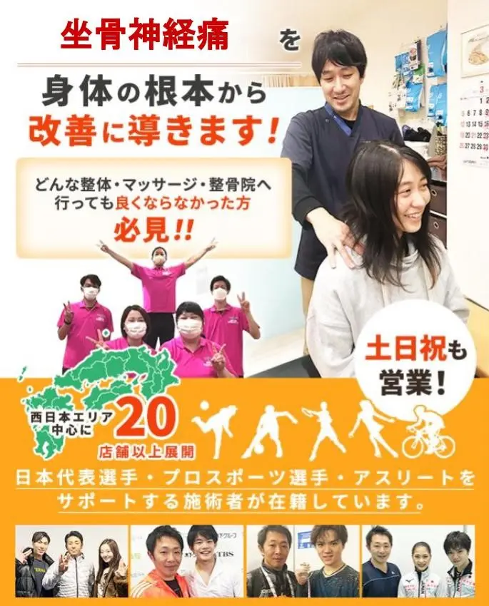 ◆腰からお尻を通り足にかけて伸びている坐骨神経が様々な要因によって圧迫・刺激されることで現れる痛みや痺れなどが症状です。