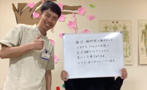 先生曰く日頃の姿勢が原因で首肩にコリがきているとのこと。